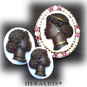 Diese Gemmen sind außergewöhnlich da die obere braune Lage sehr hoch ist. Dadurch wird das Portrait sehr hoch und plastisch