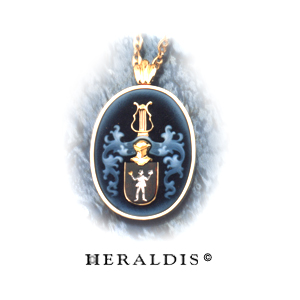 Der Granat für das rote Schild. Der Helm und die Lyra in 18 Karat Gold. Die Decken als Gemme in Lagenstein graviert. In Gelbgold eingefasst und als kombination Anhänger oder zum anstecken gefertigt.
