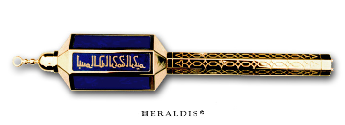 Nur wenig hochgestellten königl. Familien ist es gestattet diesen Schlüssel zu besitzen. Rundum mit Lapis-Lazuli in feinster Qualität gefasst. Die mit Goldausgelegten Intarsien wurden ebenfalls von Heraldis gefertigt.